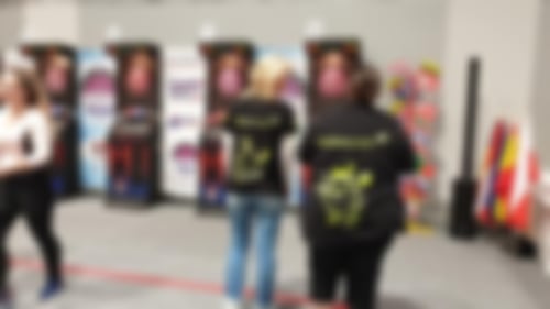 Steffi vor ihrem Banner